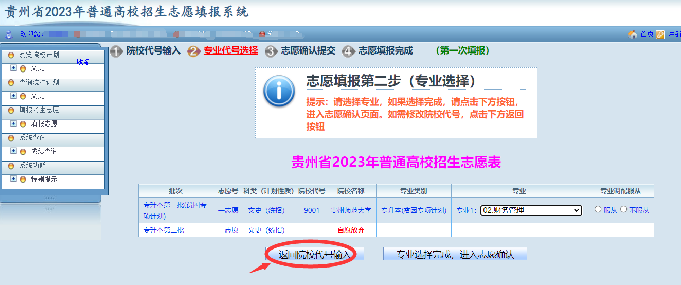 5.如果发现院校代号填错请点击“返回院校代号输入”按钮。(图-11)